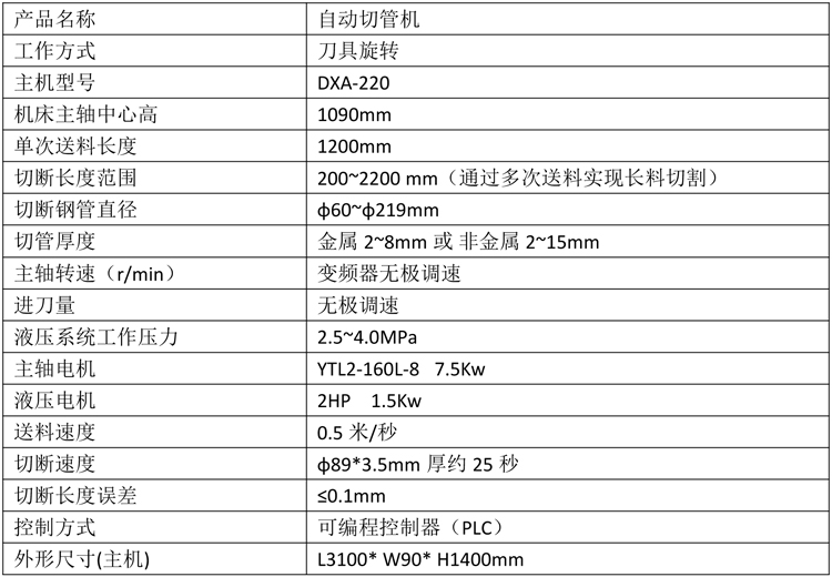 自動(dòng)切管機(jī)產(chǎn)品特性及參數(shù)
